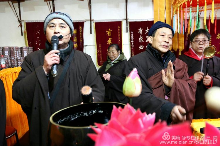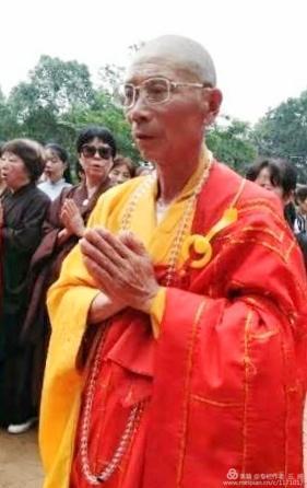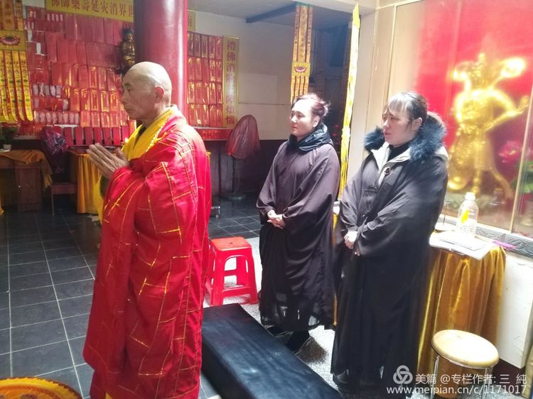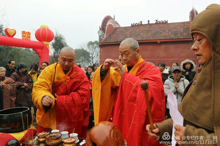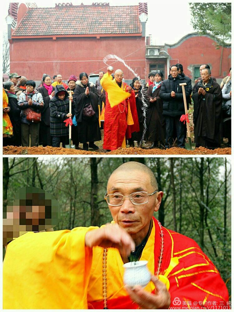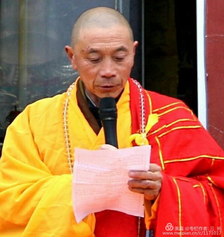 乌化寺住持上通下妙法师,主持大雄宝殿上樑法会仪式。