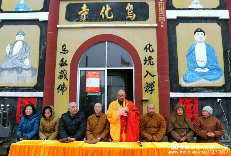 1958年秋,大跃进期间在破除迷信之口号下,毁于一旦。近年来,国家拔乱反正,深化改革政策英明,百废俱兴。2004年春,有白托陈九运先生首倡重建乌化寺,自后几番鼓动博得茶园组村民一致赞同,旋即组成筹建小组,分工负责,携倡议书筹四处募捐。是年夏动工,孟冬月庙宇落成,此次工程浩大,任务艰巨,有赖于倡首者之热心,筹建小组之魄力,茶园组村民不辞劳苦,无私贡献之精神,更难得社会各界有识之士,鼎力扶持,慷慨解囊赞助,赢得弘扬佛教文化之胜地。庙貌在庄严,为纪无量之功德,凿石铭碑,吾有感于因其孝而建寺,口占一绝以结此记。